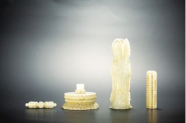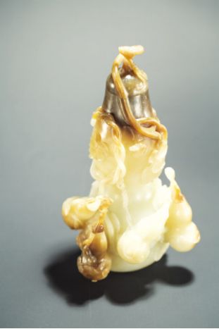 诗云:“细观玉轩吟,一生良苦心。雕琢复雕琢,片玉万黄金。”玉器“三分看料,七分看工”,从玉器来到世人身边,雕工便看做是玉文化的精髓。在杨根连位于北京亚运村的工作室“相伯居”的展室里,我们看到了他历年来制作的精品,这些作品令人惊讶得合不拢嘴巴。“福禄万代葫芦摆件”,乍看之下没有什么稀奇,该作品用一整块带糖白玉琢成,闭合时是一大数小几只葫芦,仅高160毫米。但是机巧藏在葫芦腹中,打开葫芦嘴,每个葫芦中都能提出长链,且链中有链、葫芦里有葫芦。环环相连无接无拼、连绵不断,总长更达750毫米。“玉器只能做减法,是不能增加材料上去的,这个作品的所有材料均出自一块整玉,锁链以及锁链上的小葫芦都是从大葫芦掏膛而出,可以说达到了玉工链子活儿的最高峰。”相伯居的人员介绍道,“这只葫芦杨根连先生雕琢了八年之久。”
