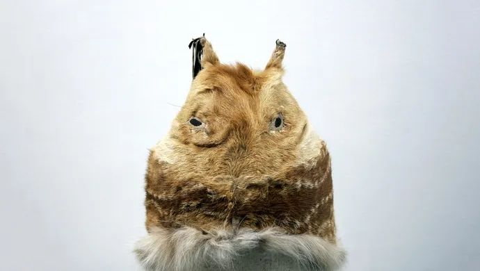 过去鄂伦春族百姓选择狍头作为伪装皮帽,他们持枪趴在灌木丛和草丛里,宛如一只狍子,以诱引猛兽前来,这样来完成狩猎。