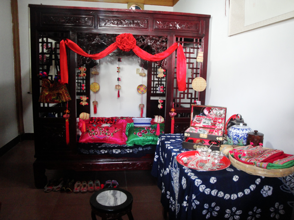 白族婚礼一般要举行四天,第一天叫“预喜”,主要是杀猪宰羊,搭彩棚,迎喜神,接月老以及布置客堂、洞房和贴对联等。第二天为“正喜”,唢呐高奏,锣鼓喧天,或骑马或坐轿,迎亲队伍浩浩荡荡到女方家迎新娘,在完成了一系列妙趣横生的礼仪后,经媒人再三催请后,新娘才依依不舍,由其亲兄长背出门。新娘迎出门外后,新姑爷还要专门返回给丈母娘磕头拜别,意为“回马谢亲”。新娘进门时要跨火盆或马鞍,表示兴旺或平安,有人还要故意在火盆里洒上辣椒面,呛得大家流泪,白语里“辣”叫“qil”,与“亲”谐音,表示以后亲亲密密。新娘迎进门后,拜堂前要梳妆,即女子换头礼,请年高妇女为新妇梳头,先戴凤冠,然后换成纱帕,脚踩装满粮食的斗,寓意五谷丰登,魁星踢斗。斗中摆一杆秤,寓意新娘心像秤一样公平,对丈夫对父母一视同仁,又放置一把剪刀,表示新娘对爱情的忠贞不二。第三天回门。新娘清晨早起,在别人帮助下“收头”,将头发梳成高高的髻,作为成人的标志,然后由新郎陪同回娘家。新娘手中提着一篮糖果,有花生、瓜子、水果糖之类,路上遇到熟人和小孩,就抓给一把。这天新娘家要办酒席招待女婿,女婿一一拜见岳家长辈,新婚夫妇当日返回男家。第四天酬客,折彩棚,招待帮忙的客人。
