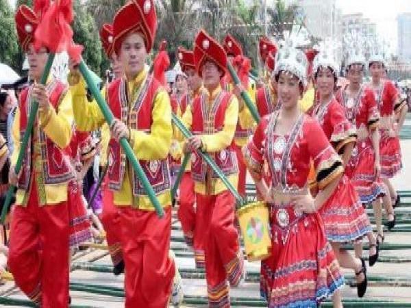 居住在广西西部一带的壮族,每年夏历三月初三这一天,家家户户都用嫩绿的枫叶、红兰草和黄杞子等蒸成红、黄、蓝、紫、白五色糯米饭,人们在门楣上和房屋周围插上一枝枝枫树叶,在村头寨尾搭起布棚,在布棚下摆上五色糯米饭等祭供品,男女老少围着布棚唱歌,赶歌圩,老年人还把染色的熟鸡蛋装在小网兜里,挂在小孩的胸前,男女青年在赶歌圩时,还要“碰蛋”。壮族三月初三歌节的来历,还有一个传说呢。