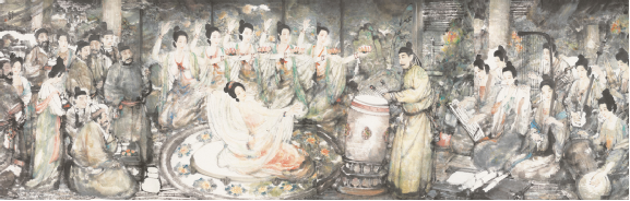 剑器舞也有着悠久传统,早在春秋战国时代,孔子的学生子路,戎装见孔子,曾拔剑起舞。学生拜见老师舞剑,当然只是表演技艺,是对老师致敬的意思。湖北随县战国初期曾侯乙墓出土的鸳鸯盒上的乐舞图案中,鼓旁的舞者腰间挂着短剑,说明剑舞可能是当时颇为流行的一种舞蹈形式。楚汉相争时,刘邦、项羽宴于鸿门,项庄说:“君王与沛公饮,军中无以为乐,请以剑舞。”项羽表示同意,于是项庄拔剑起舞,逐渐靠近刘邦,企图借机杀死刘邦,在场的项伯见刘邦危急,也以剑伴舞,保护刘邦不被项庄杀害。这个故事表明,当时筵宴中有舞剑作为助兴表演的风俗。唐代,杜甫作《故武卫将军挽歌三首》,有“舞剑过人绝”句。可见当时许多人会舞剑,而且各有绝招。公孙大娘最为擅长的《剑器舞》,是《裴将军满堂势》。杜甫曾观其舞,并写了《观公孙大娘弟子舞剑器行》一诗,观者如山,可见此舞技巧之高。