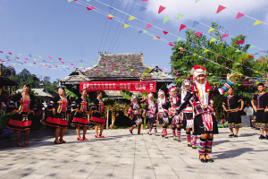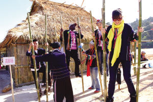 泰国清莱的“阿卡”演出队(右排)与西双版纳爱尼人同台演出