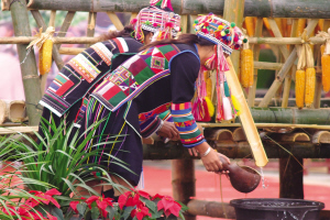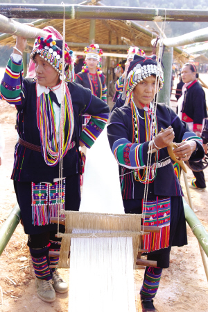 “嘎汤帕”节上,爱尼妇女在演示纺织手艺