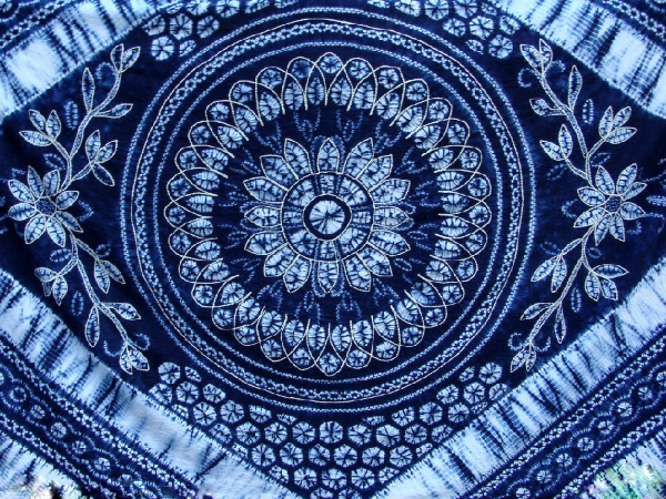 随着市场需求的扩大,大理扎染的图案也越来越复杂和多样化,起码有数百种之多,而且各种尺寸大小都有,衍生出扎染包、扎染帽、扎染衣裙等琳琅满目的工艺品。