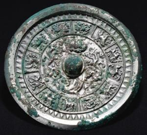2019年出土于拉甫却克墓地竖穴偏室墓的四神十二生肖镜。 王永强供图