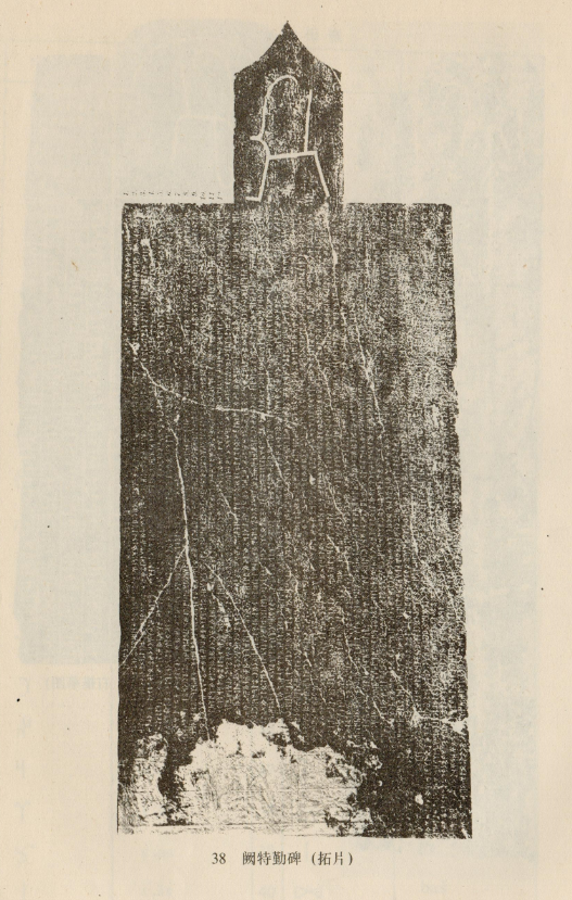 突厥碑刻。为第二突厥汗国颉跌利施可汗(骨咄禄)次子、毗伽可汗弟阙特勤的纪功碑。建于唐玄宗开元二十年(732年)。有突厥、汉两种文字,内容互不相同。碑身上端有蟠螭,下部为赑屃。突厥文部分正文共66行。撰写者为阙特勤侄。碑文内容是回顾突厥汗国历史,记述阙特勤一生的赫赫战功,勉励突厥贵族奋发图强,励精图治,并描述毗伽可汗对弟去世的悲痛心情以及各国、各族委派大员吊唁、唐朝派人建祠刻碑之盛况。此碑为俄国学者雅德林采夫于1889年在鄂尔浑河右岸和硕柴达木盆地发现。现存原地。1890年公布于世。1893年,丹麦学者汤姆逊据此解读了突厥文。研究过此碑的还有拉德洛夫、奥尔昆、韩儒林、岑仲勉、小野川秀美、兰司铁、马洛夫、特根等。