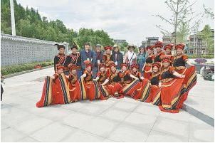 国际诗人与身着彝族盛装的美女合影