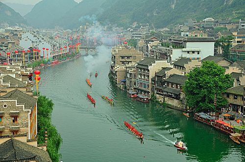 镇远赛龙舟是一项综合性传统体育文化活动,主要活跃于贵州省黔东南州镇远县境内,内容以划龙舟比赛为主,同时包括举行传统的祭龙仪式,运动员列队上街舞龙舞狮、彩船游江、水中抢鸭子、放河灯、燃礼花和文艺表演等。