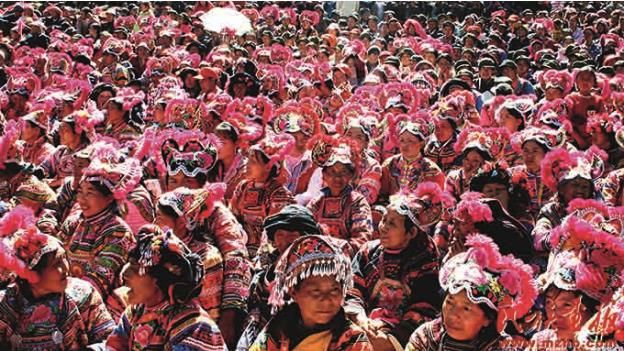 云南省楚雄彝族自治州永仁县彝族赛装节上的“一片红”。