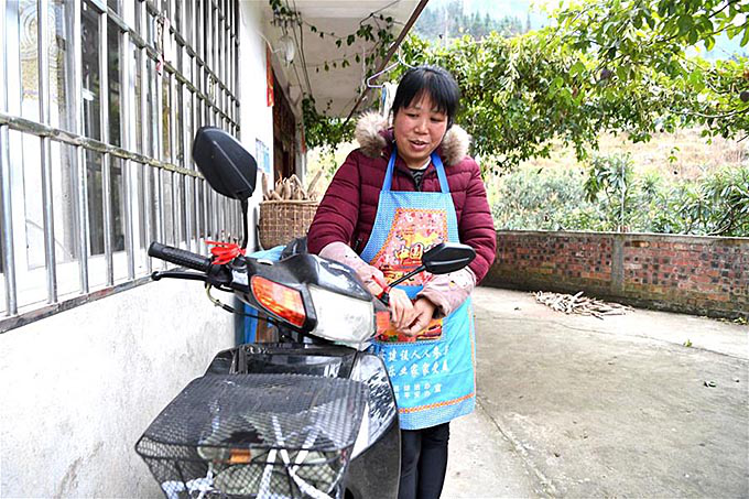 与此同时当地对石崇香一家在产业发展和就业上给予精准帮扶,引导和帮助他们种植2亩多枇杷,3亩猕猴桃,3亩油茶。“果树种植需要技术,县里的农业技术人员每个季度都进村培训,有病虫害可以及时解决。掌握猕猴桃套袋技术后,果子更好了,卖价比以前高。”石崇香介绍,水果种植已成为家中的支柱产业,2018年枇杷和猕猴桃收入1.1万多元。“两年后猕猴桃进入丰产期,收入会更高。”