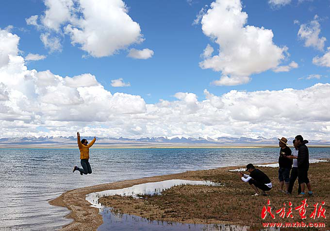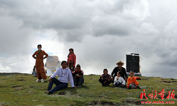 在澜沧江源头观光的桑吉一家