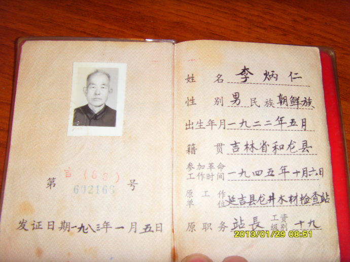 李炳仁是大公无私,性格耿直,坚持实事求是的人。据我所知,他转业到地方工作以来,主要在吉林省延边地区林业战线工作。他只有念过小学几年的书,后来参加过成人文化补习班,顶多也就初中文化水平。在史无前例的“文革”期间,遭到“造反派”的隔离审查长达近两年,身心受到严重的创伤。在上世纪七十年代初,被下放到农村,一呆就是四年多。后来落实政策回到城里。也许因为性格耿直,他在工作中对不良倾向敢于揭漏和批评,时有与领导发生矛盾。回过头来看,这确实影响了他个人的发展。但他表示决不后悔。他于一九八三年一月五日从站长的岗位上光荣离休。