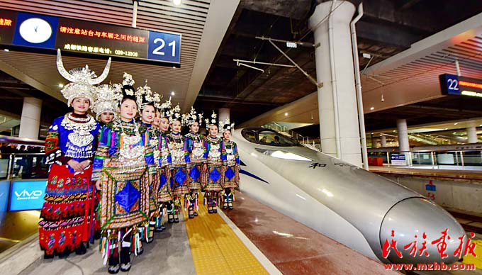 用少数民族礼仪欢送贵阳北站首开G4135次至昆明的高铁(李勇 摄影)