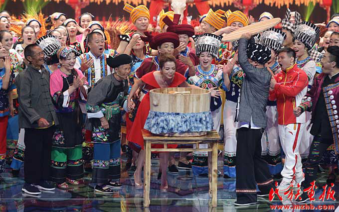脱贫致富的十八洞村民参加中央电视台的《魅力中国城》比赛,向全国人民展示十八洞村的魅力,展示苗族群众对美好生活的向往(湘西自治州州委宣传部 供图)