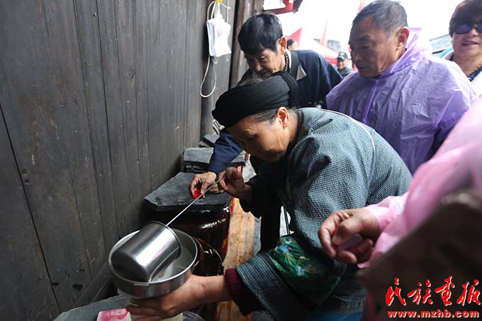 村民自酿的苗家酒深受游客喜欢(滕俊 摄影)